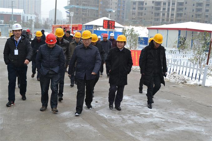 1月25日上午,大雪紛飛,寒風凜冽,宣城市張冬云市長和市建管局領導一行來到我公司承建的美都玉府二期項目部檢查指導工作,實地檢查面對極寒天氣的應急措施和安全生產工作情況,董事長鄔本水先生及公司有關領導陪同調研。