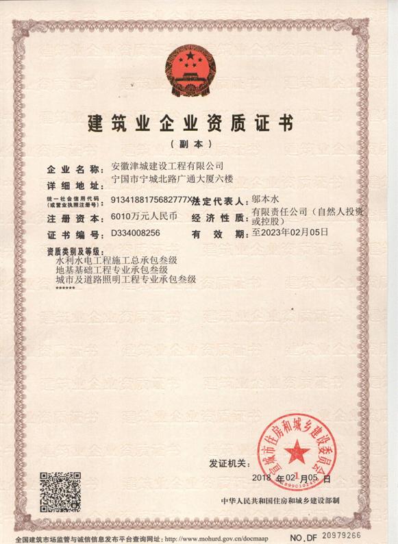 熱烈祝賀我公司取得水利水電總承包三級資質和鋼結構專業承包二級資質