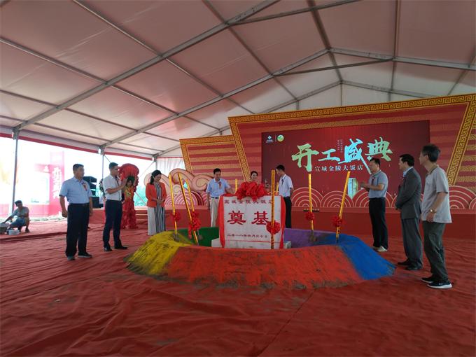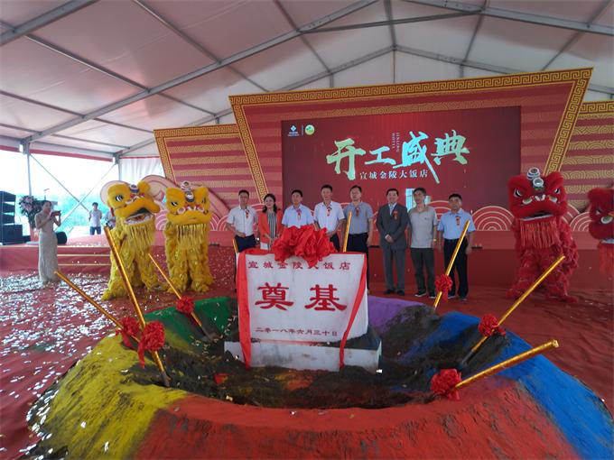 2018年6月30日上午,宣城市金陵大飯店開工奠基儀式盛大舉行!我市領導郭金友市長,投資方同曦集團董事長陳廣川及金陵飯店管理公司總裁陳雪明、承建方安徽津城建設集團有限公司董事長鄔本水及市直相關部門領導、企業負責人到場共同參加了奠基儀式。