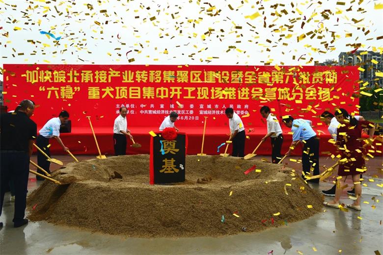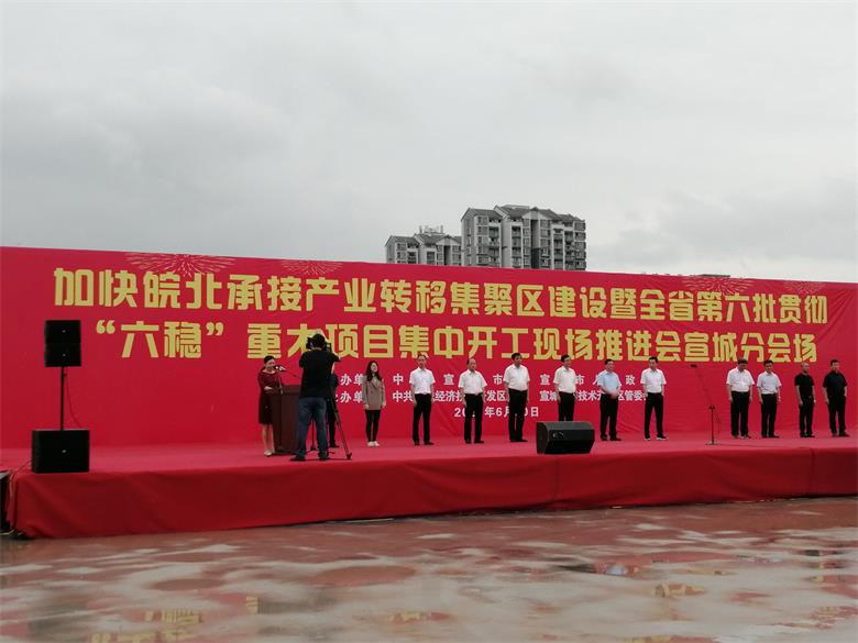6月20日上午,“全省加快皖北承接產(chǎn)業(yè)轉(zhuǎn)移集聚區(qū)建設(shè)暨全省第六批貫徹“六穩(wěn)”重大項目集中開工現(xiàn)場推進會宣城分會場活動”在宣城市開發(fā)區(qū)宇航智能制造產(chǎn)業(yè)基地舉行,市委書記陶方啟、市長孔曉宏、市政府主要領(lǐng)導(dǎo)班子及經(jīng)開區(qū)管委會一行領(lǐng)導(dǎo)出席活動。