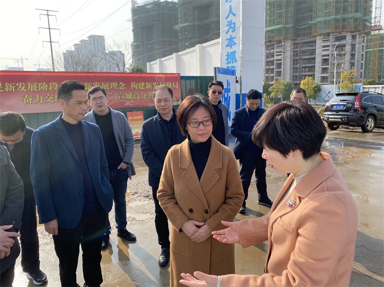 3月3日上午,宣城市副市長楊林秀、副秘書長吳麗云等一行領導蒞臨我公司承建的宛陵湖小學項目實地調研。經開區黨工委員、系統工會主席余紅陪同。