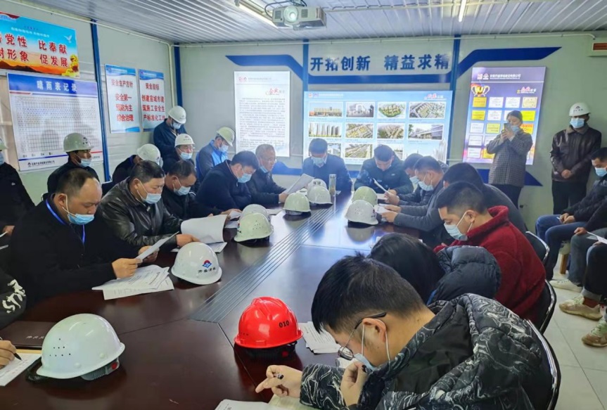 會上,首先由公司副總工、工程管理部經(jīng)理洪建華帶領(lǐng)各項(xiàng)目負(fù)責(zé)人及安全員學(xué)習(xí)宣城市住房及城鄉(xiāng)建設(shè)局下發(fā)的建管函【2022】39號《進(jìn)一步加強(qiáng)建筑施工安全生產(chǎn)的緊急通知》、鄔本元宣讀建管函【2022】44號《關(guān)于加強(qiáng)建筑工地新冠肺炎疫情防控和應(yīng)急處置工作的通知》、工程管理部副經(jīng)理劉皓向與會人員宣貫公司關(guān)于《工程質(zhì)量、安全、進(jìn)度施工獎罰細(xì)則》的文件內(nèi)容,并對相關(guān)工作進(jìn)行要求與布置。