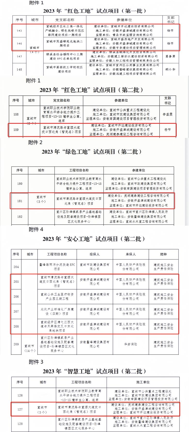 近日,安徽省住房和城鄉(xiāng)建設(shè)廳發(fā)布2023年“四個(gè)工地”(第一批)、(第二批)試點(diǎn)項(xiàng)目名單,公司承建的經(jīng)開區(qū)北部新區(qū)路網(wǎng)一期、茂盛錦苑北地塊二期、雙創(chuàng)大廈等6個(gè)項(xiàng)目在“四個(gè)工地”評(píng)比活動(dòng)中脫穎而出,共獲得“紅色工地”、“智慧工地”、“綠色工地”、“安心工地”9個(gè)試點(diǎn)項(xiàng)目稱號(hào)。